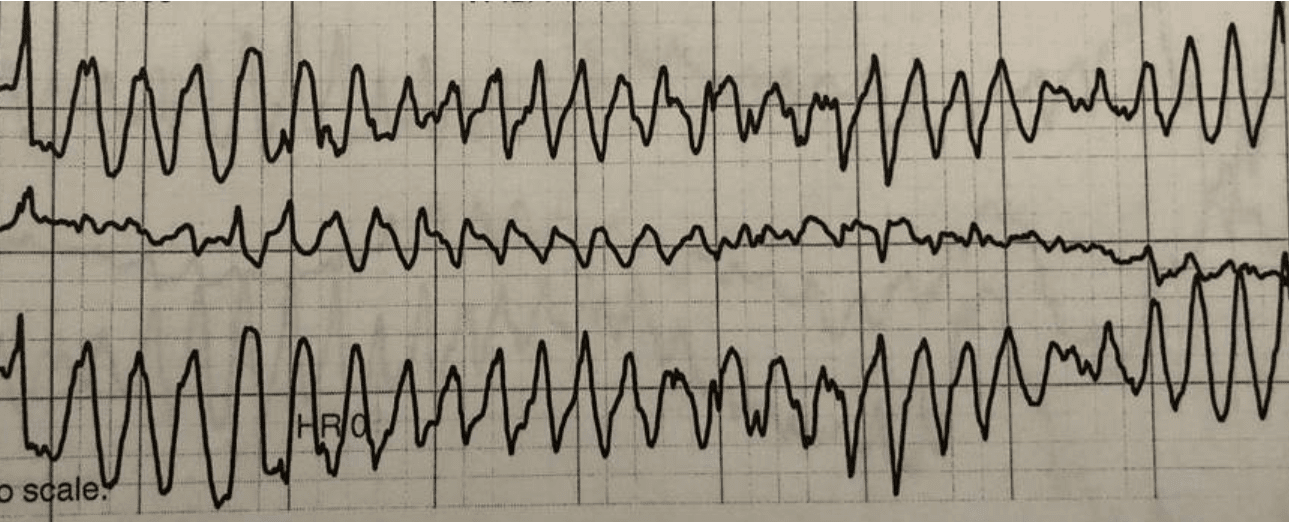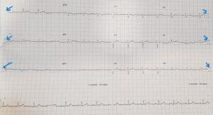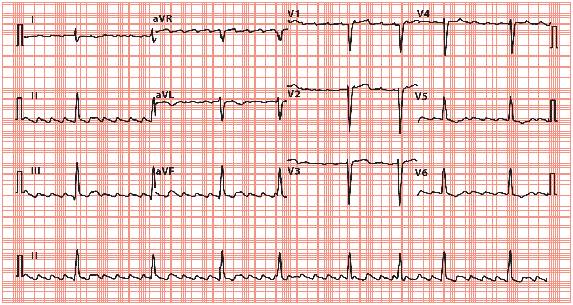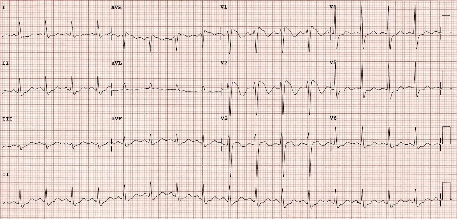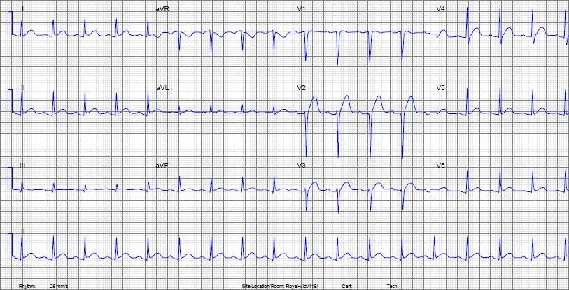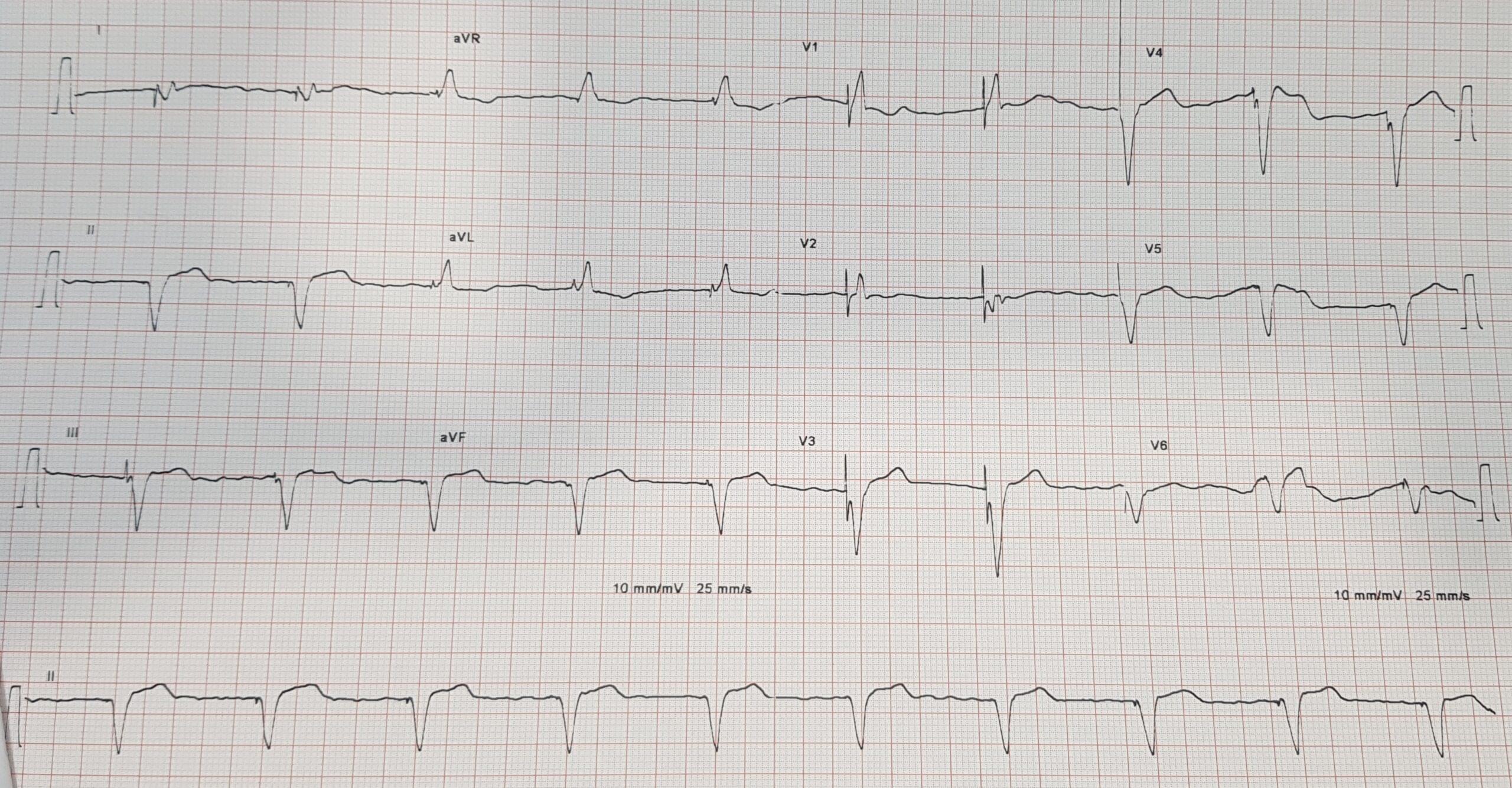 12. This elderly male patient, a known case of IHD, presented with dizziness and syncope. What does this ECG reveal?
